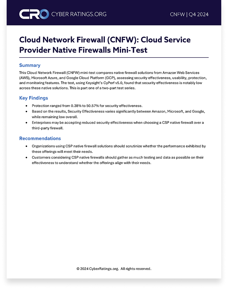 In November 2024, we published our Cloud Service Provider (CSP) native cloud firewall Mini-Test Report, which included results for Google Cloud Platform’s Next-Generation Firewall (GCP NGFW). Shortly after publication, the Google Cloud Network Security Product Team contacted us with concerns about the test results, which they felt did not reflect the level of effectiveness they strive to provide for their customers. This report includes the updated results and steps taken to improve the product’s performance.