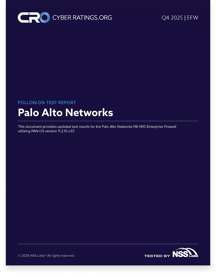 During the initial test of PAN-OS 11.2.8-c537, NSS Labs was able to bypass protection using Layer 3 IP and Layer 4 TCP evasions. Following receipt of test results published on November 5, 2025, Palo Alto Networks responded quickly to develop an updated PAN-OS firmware package (PAN-OS 11.2.10-c37) that NSS Labs then tested using the identical test methodology and tools employed in the original evaluation.